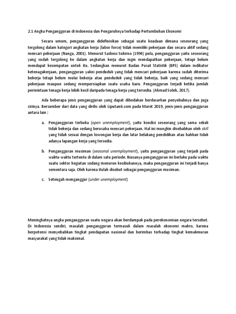 Indonesia Termasuk Jenis Pengangguran Apa : Penganguran memang merupakan suatu permasaahan yang harus dihadapai oleh suatu negara.. Setengah menganggur termasuk jenis pengangguran berdasarkan jam kerja yang di dalamnya termasuk para tenaga kerja yang bekerja di bawah jam kerja normal. Masalah pengangguran merupakan salah satu masalah makro ekonomi. Tidak seperti jenis pengangguran natural, pengangguran siklis terjadi ketika permintaan barang dan jasa turun drastis sehingga memaksa pemilik perusahaan untuk memberhentikan banyak karyawannya dengan tujuan memangkas pengeluaran perusahaan. Sebab para petani tidak setiap hari aktif melakukan pekerjaan. Di bawah ini terdapat beberapa jenis pengangguran nah jenis pengangguran sendiri dapat dibedakan menjadi 3 jenis, yang diantaranya ialah sebagai berikut apa yang dimaksud dengan pengangguran terbuka ?